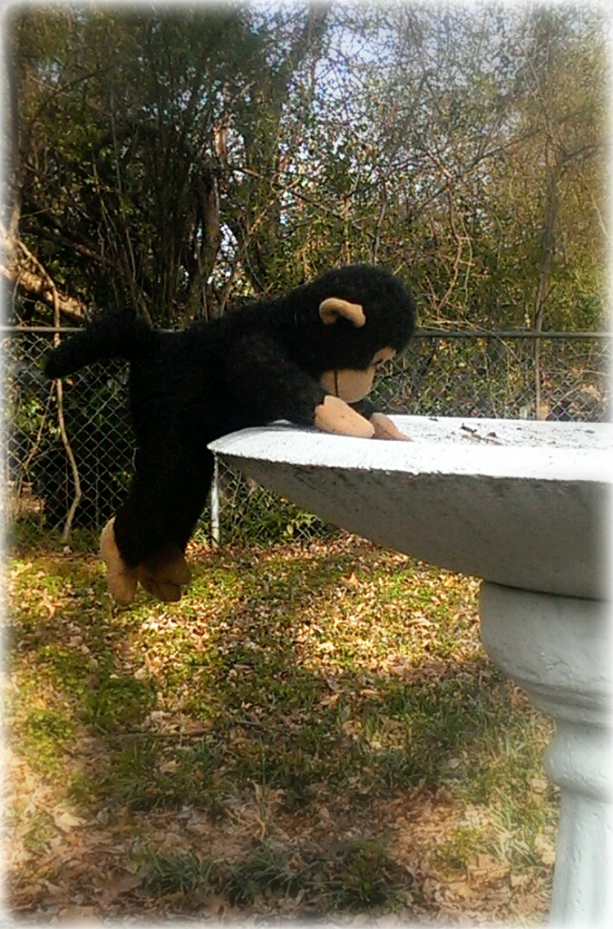My curious little “nono” had just reached the top of the “pool” when I caught him and explained, again, that this was not a swimming pool for monkeys. He asked if he could just tan on the side of the “pool” but knowing that he clearly did not understand, I snapped his picture and took him back inside.